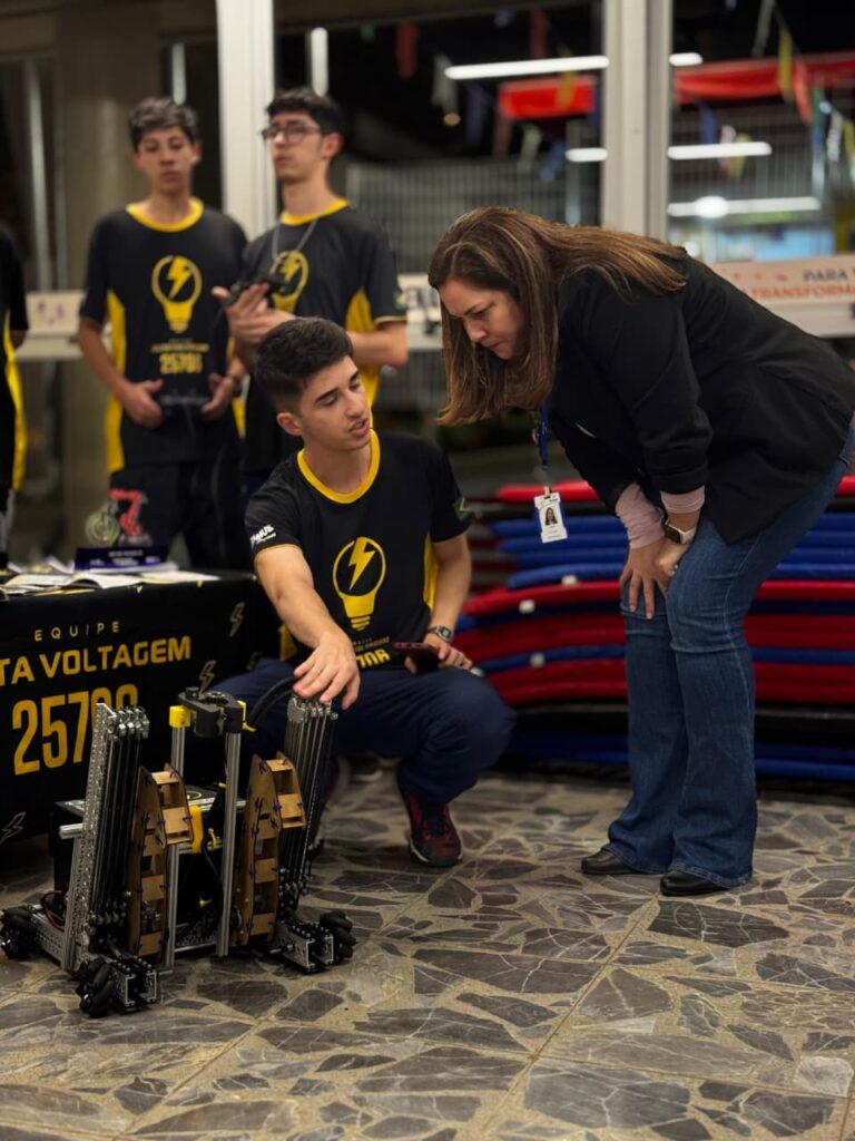 Fomos ao evento com o propósito de divulgar os valores da FIRST e compartilhar a história da nossa equipe e das competições das quais participamos. Durante nossa apresentação, mostramos um pouco da nossa trajetória, do impacto da robótica em nosso aprendizado e de como a comunidade FIRST transforma vidas por meio da colaboração e da tecnologia.