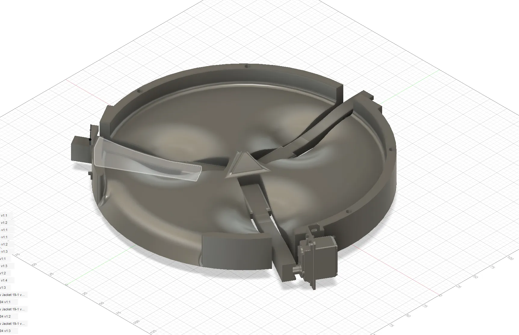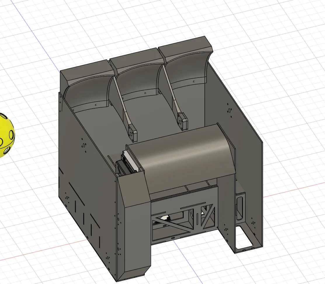 A primeira ideia se tratava de um mecanismo de selecionar os artefatos em uma especie de bandeja, que ao selecionar as cores desejadas seria possivel realizar a sequência correta e fazer mais pontos no final, através do auxílio desse mecanismo seletor e do novo mecanismo de torre giratória ao qual não seria necessário manobrar o robô para ajustar a mira, a própria torre utilizando uma câmera teria a capacidade de mirar enquanto os drivers apenas se preocupariam em coletar os artefatos.